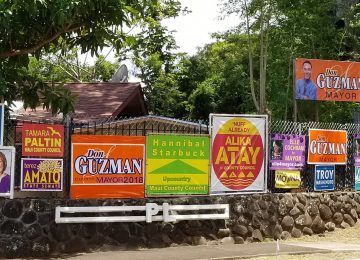 Due to the diligent perseverance of a group of female environmentalists back in the 1920s, Hawaii’s beautiful landscape has remained free of the blight of endless roadside billboards. But come election time local neighborhoods become blanketed with prominent signs by competing political candidates. This “sign wars” as it’s become known was highlighted by Maui mayoral