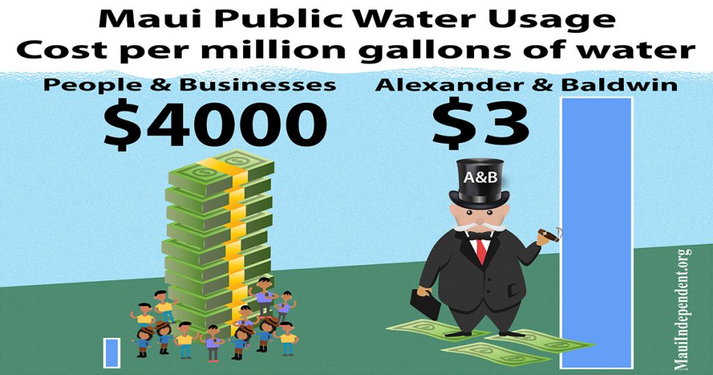 Through cronyistic plantation style contracts A&B continues to defy the will of the people. It is only because A&B has been granted access by the state to tens of  billions of gallons of water at an outrageously discounted cost of around $3 per million gallons that they are able to grow whatever they like. Water rates for regular farmers on Maui are $1 for 1,000 gallons of non-potable water.